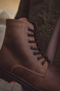 Men`s genuine leather Boots made of crazy horse leather. This material is reliable and has a special charm that acquires its own original pattern over the years. The boots are supplemented with lacing, thanks to which you can securely and comfortably fix them on your foot. Flexible and stable sole for confidence in every step. Size Chart: