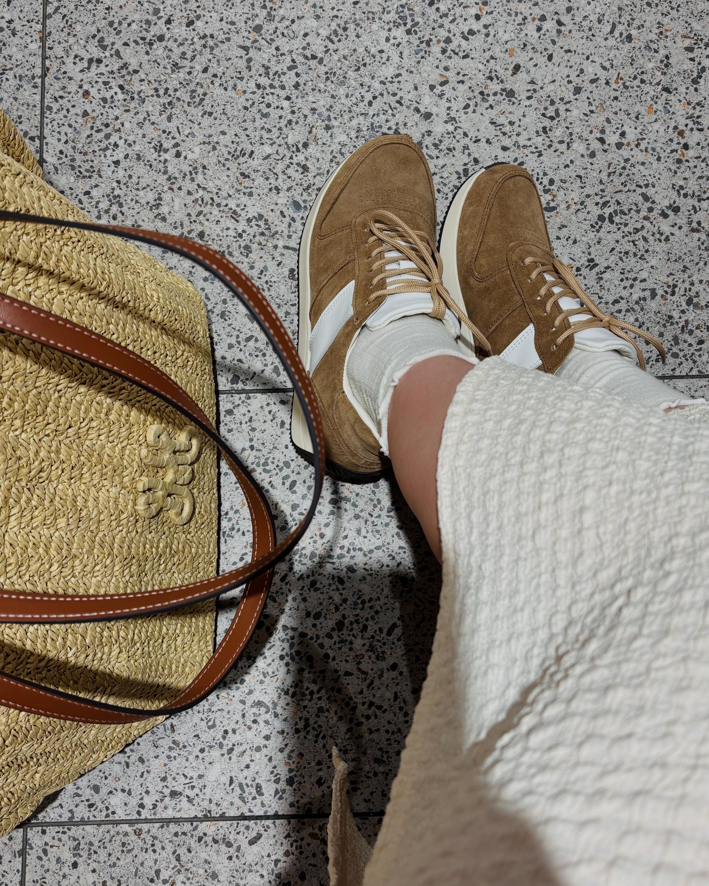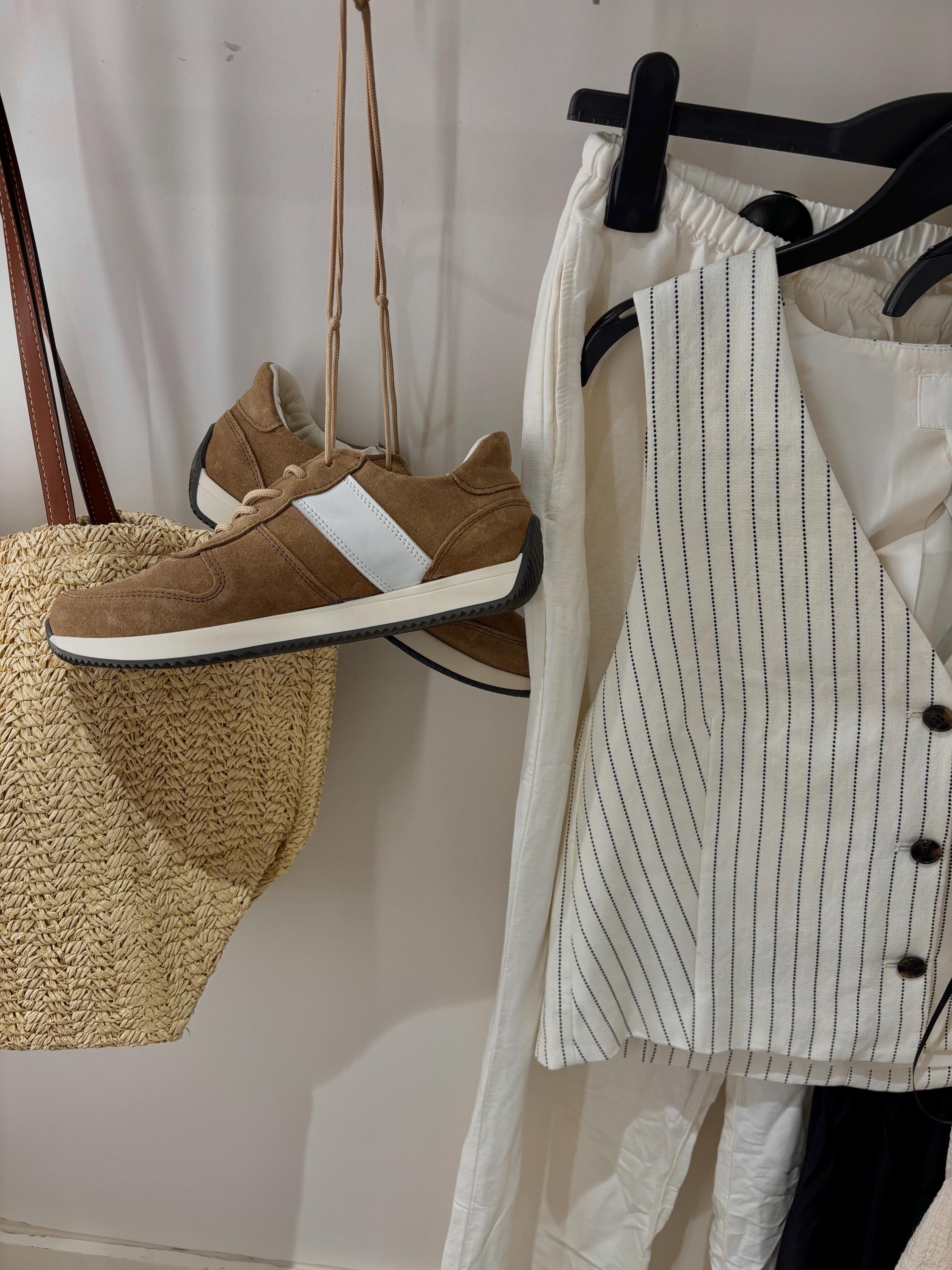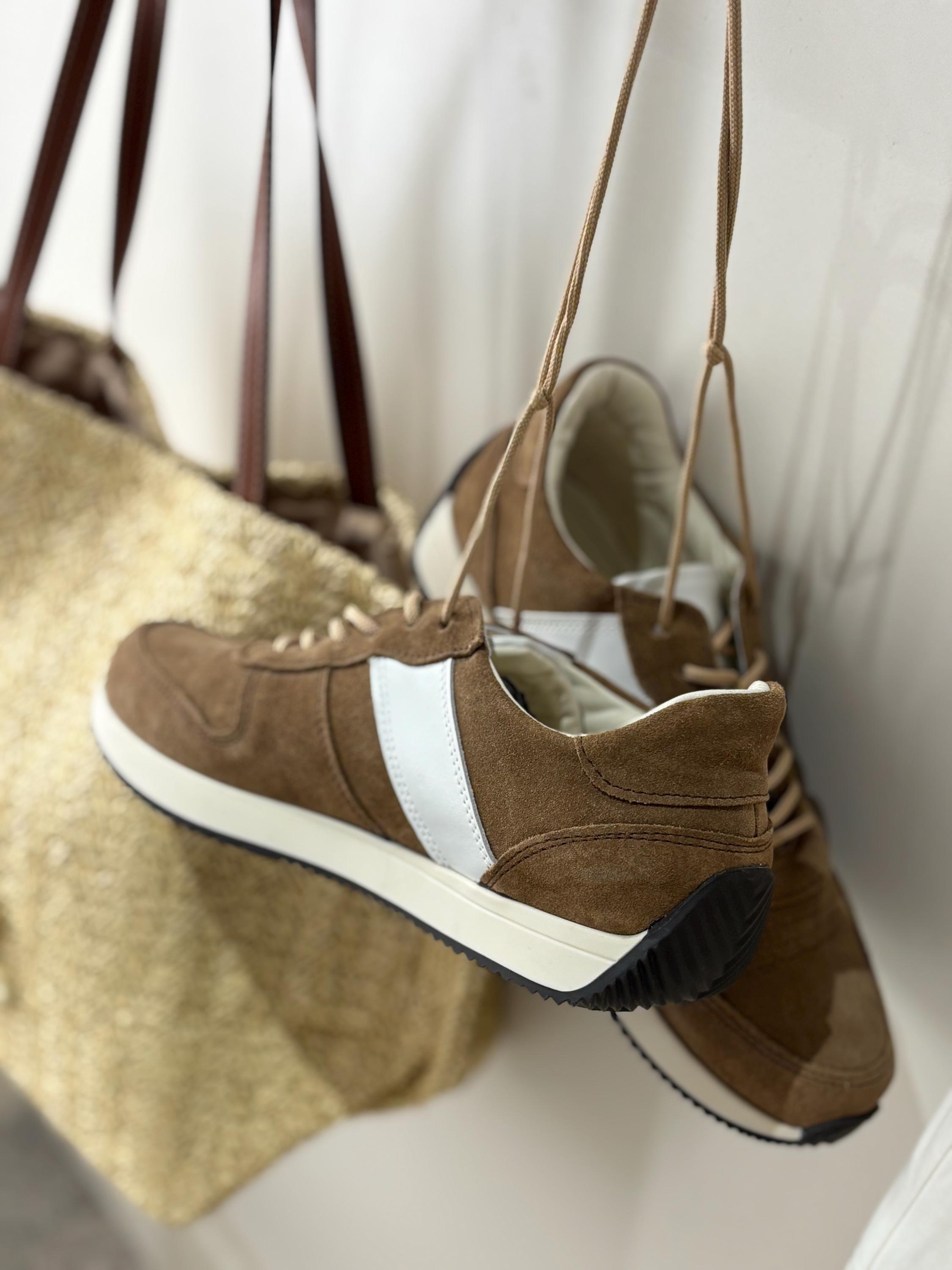 ✓ Distinctive brown suede sneakers that add warmth and character to any look
